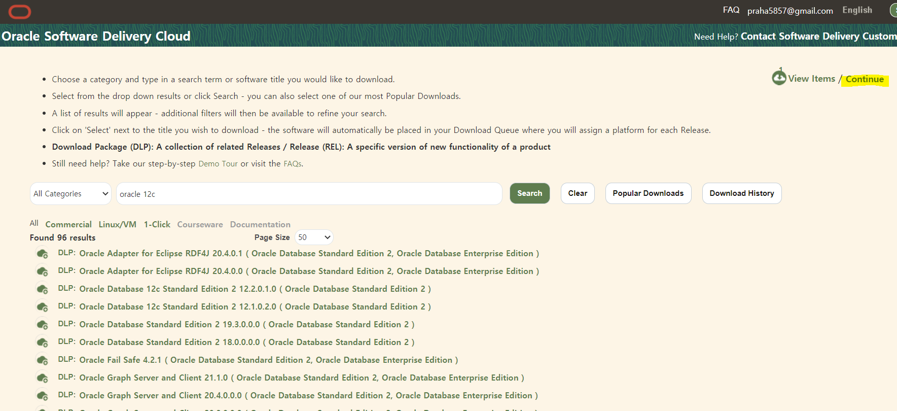 - 검색창에 oracle 12c를 입력 후 Search 버튼을 클릭한다.