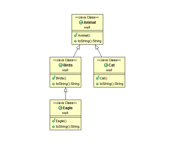 예를 들면 Animal --> Birds --> Eagle 순으로 상속을 받을 때